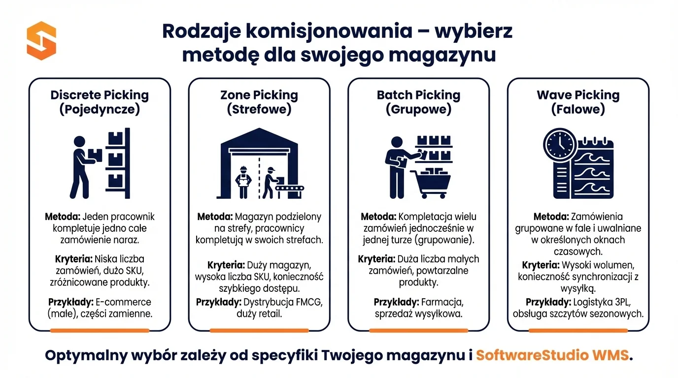rodzaje komisjonowania, kompletacja towarów, Studio WMS.net, optymalizacja magazynu, SoftwareStudio